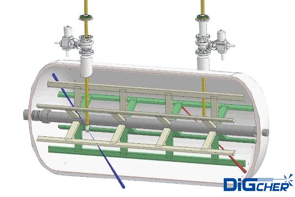 德高潔PVDF臥式反應(yīng)釜自動(dòng)化清洗系統(tǒng),根據(jù)PVDF生產(chǎn)過(guò)程中,二氟乙烯(VDF)單體在臥式反應(yīng)釜聚合反應(yīng)的工作特點(diǎn),結(jié)合臥式反應(yīng)釜自身結(jié)構(gòu),設(shè)計(jì)研發(fā)的一套專(zhuān)用于臥式反應(yīng)釜清洗的裝置。由高壓水清洗裝置搭載自動(dòng)化清洗系統(tǒng)方式,實(shí)現(xiàn)操作簡(jiǎn)單,自動(dòng)化程度高,安全環(huán)保、節(jié)約時(shí)間,代替人工作業(yè)。可移動(dòng)式設(shè)備,體積小,靈活性強(qiáng),多點(diǎn)定位機(jī)構(gòu)深度清洗,高壓水射流技術(shù),三維旋轉(zhuǎn)噴頭與伸縮桿的復(fù)合運(yùn)動(dòng),可以對(duì)反應(yīng)釜內(nèi)攪拌軸背面、底部、上封頭等位置的清洗,在不對(duì)反應(yīng)釜造成物理?yè)p傷的情況下,實(shí)現(xiàn)360°無(wú)死角清洗。解決現(xiàn)有清洗方法中存在的自動(dòng)化程度低、耗時(shí)費(fèi)力、容易造成人身傷害等問(wèn)題。