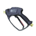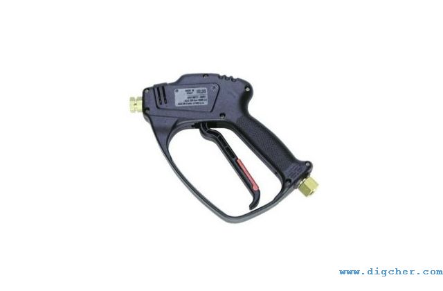 高壓水槍是高壓清洗機(jī)的重要組件之一,它主要負(fù)責(zé)清洗作業(yè)的開始與停止。高壓水槍通過高壓管路總成連接到高壓水泵的輸出端,是高壓清洗機(jī)的執(zhí)行兼控制系統(tǒng)。高壓水槍可以按排放壓力的控制閥形式做進(jìn)一步定義,主要可分為兩種,溢流型和截流型。溢流型高壓水槍的工作原理是在扣動扳機(jī)時,槍上的溢流閥關(guān)閉,壓力得以迅速增大從而形成高壓水射流,當(dāng)松開扳機(jī)時,槍上的溢流閥打開,水從溢流閥流出,從而釋放壓力。而截流型高壓水槍的工作原理則完全不同,扣動扳機(jī)時,壓力增大,當(dāng)松開扳機(jī)時,高壓水仍保持在系統(tǒng)中,通過高壓水泵上的溢流閥流出或是循環(huán)利用。